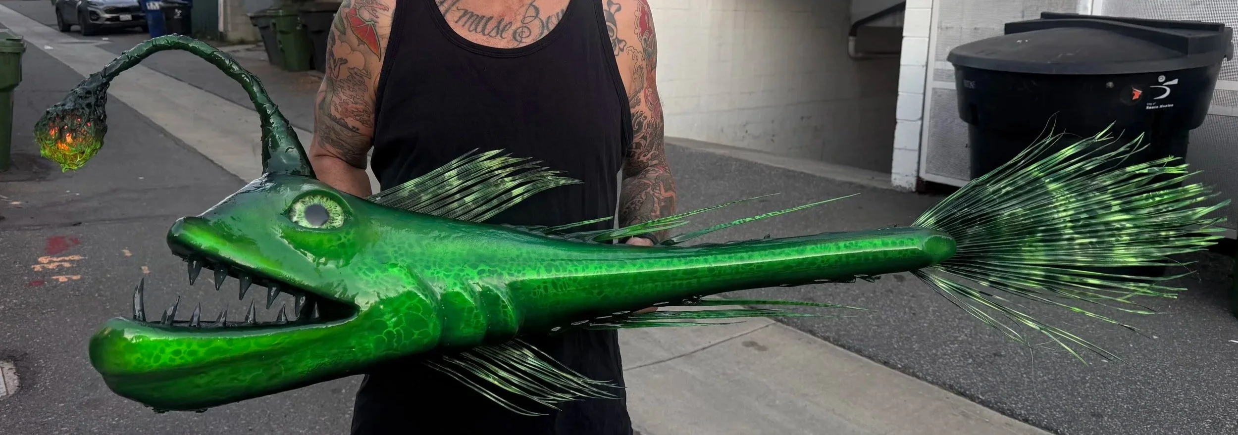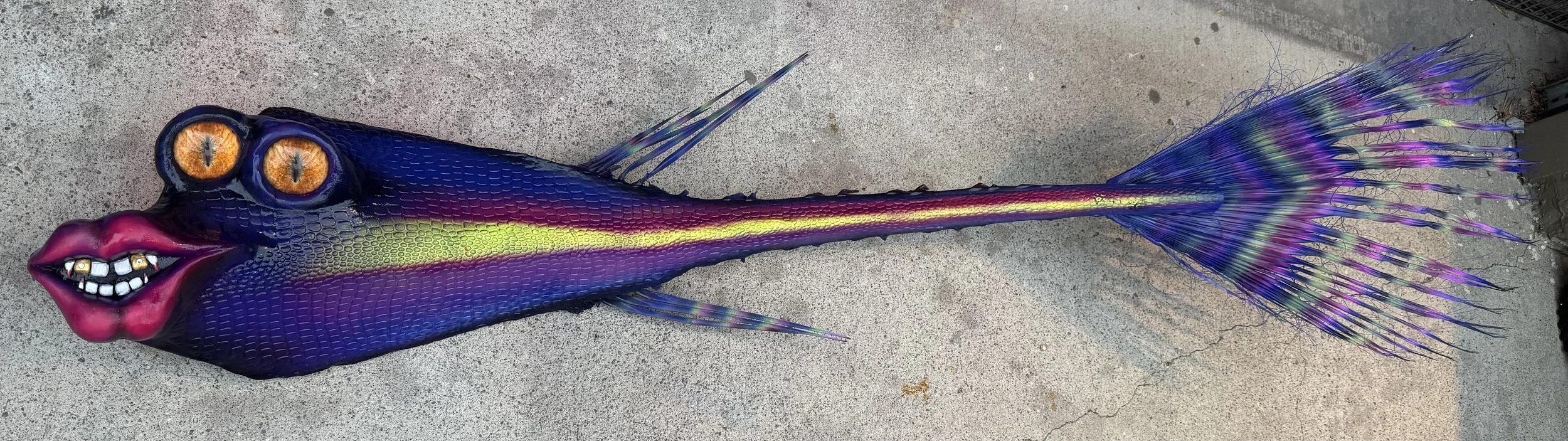 All of my fish are made from fallen palm fronds found all over Los Angeles. Each of my fish have a name and backstory that reflect its inspiration. Sometimes where the frond was found, or maybe a person that I know or have come across that made me want to turn their vibe into a fish! No two palm fronds are identical, and each of my fish are one of a kind.