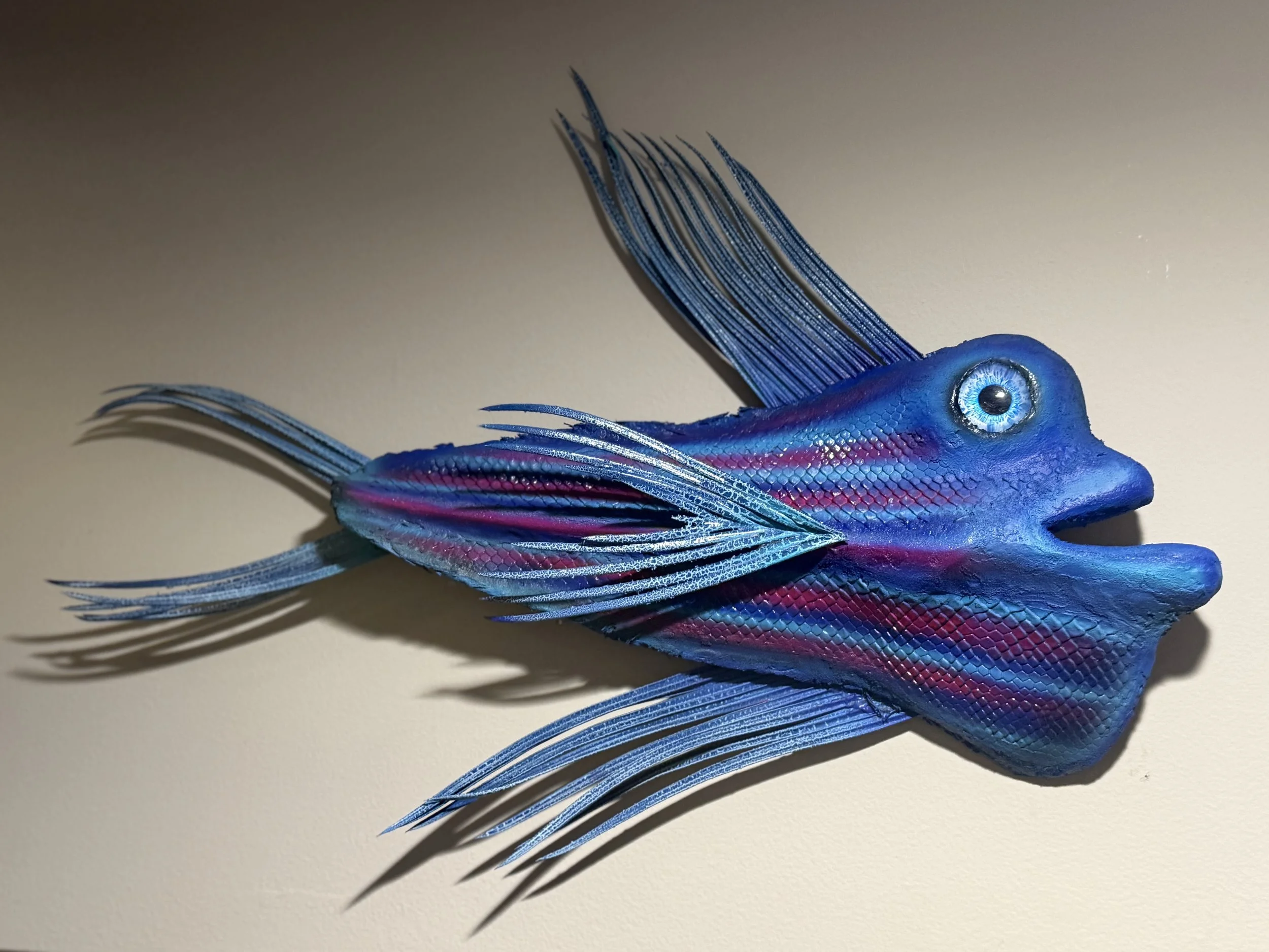 What once lived as a frond on a beautiful palm tree, has been reincarnated as a funky fresh fish! No longer one of many at the top of a tree. Reborn with a name, personality, and a much longer lifespan. Ready to be loved and talked about!